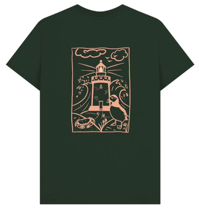 Lighthouse Adventure Fitness Organic Cotton Green T with Puffin - PRE ORDER